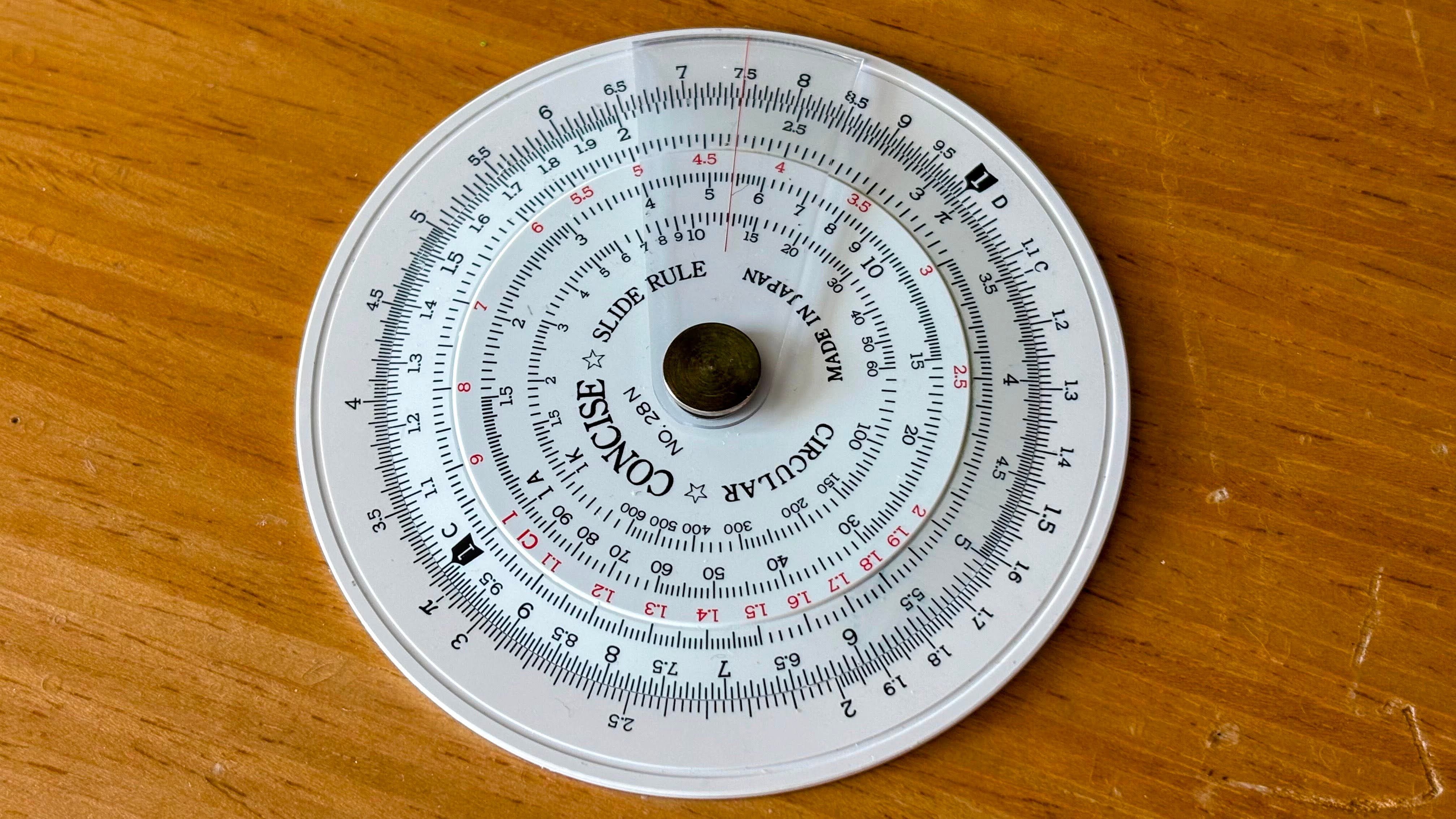 ところで,現地通貨から日本円への大雑把な計算はたいてい暗算で済ませているのですが,ときどき2桁掛ける2桁ぐらいの計算をしたいときがあります.そんなとき,僕は回転計算尺を使っています.慣れれば電卓より速く計算できて良いですよ.