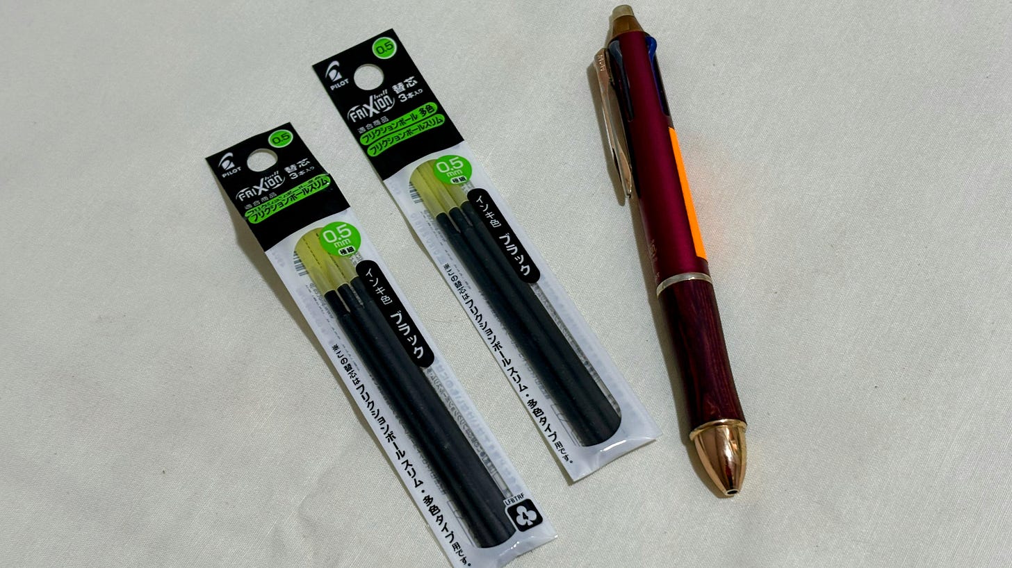 昨日ボールペンの黒インクが切れて,予備と交換しました.現場ではほぼ黒しか使わないため,別の色のスロットにも一時的に黒を挿しておいても良かったかもしれません.1