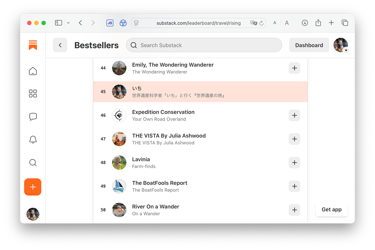 今朝,このニュースレターが配信プラットフォームSubstackの「旅行」部門「ライジング」チャートにランクインしていました.主に英語圏のチャートで日本語ニュースレターがランクインしているのは珍しい気がします.読者の皆様本当にありがとうございます.