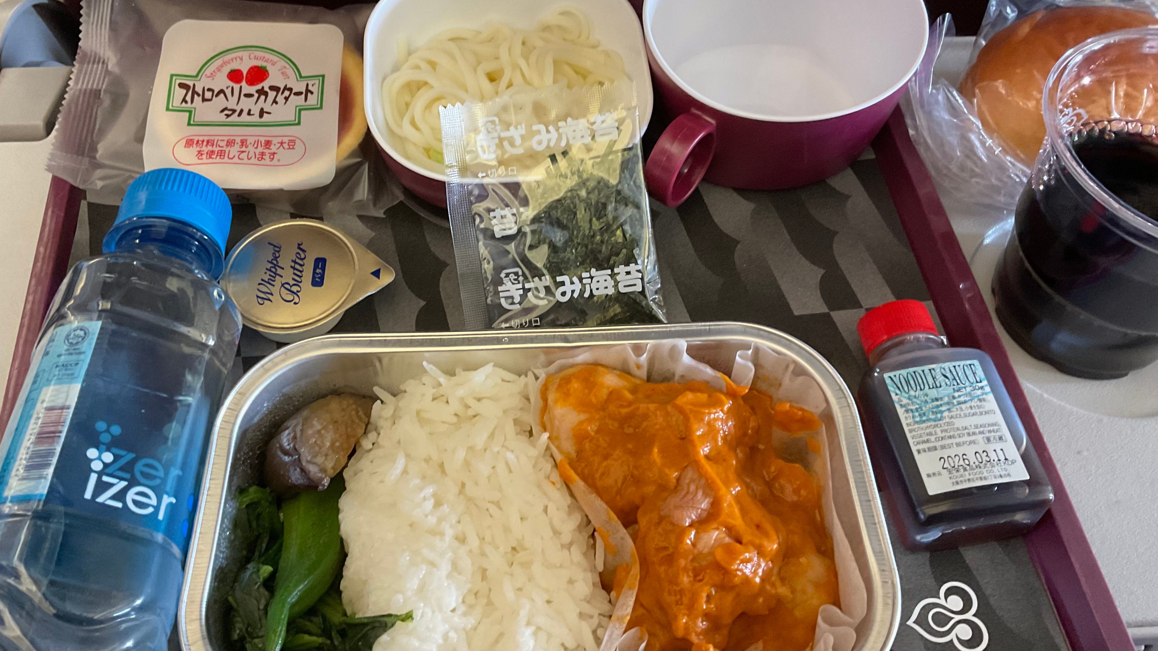 機内食にはチキンカレーを選びました.スパイシーだけれども甘口で好きな味でした.