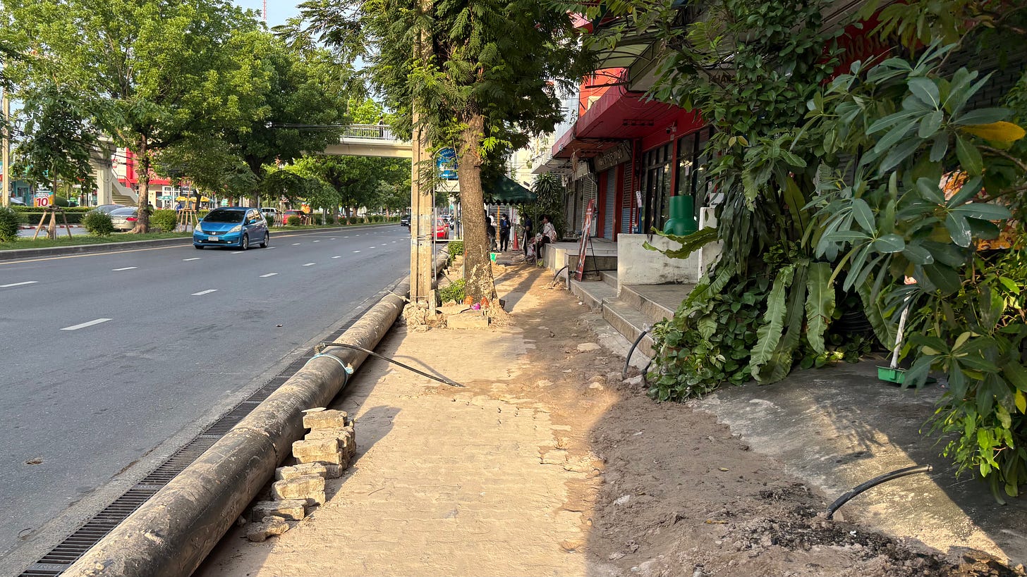 タイ入国後は学生とホテルの近くを歩いてみました.地震の影響が残っているのか,道路がところどころ陥没していました.