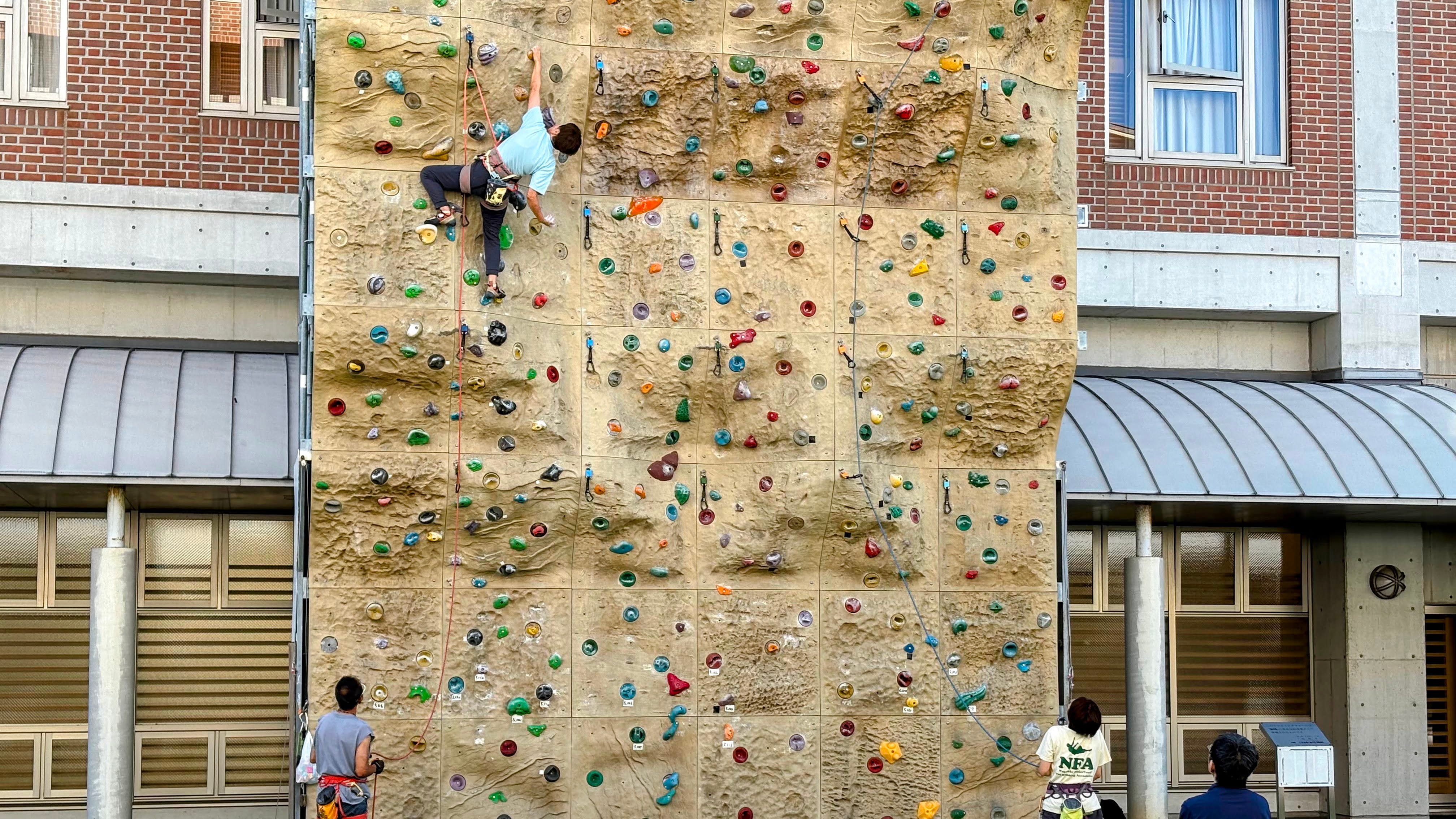 入試説明会の横でスポーツクライミングが行われていました.いいなあ.