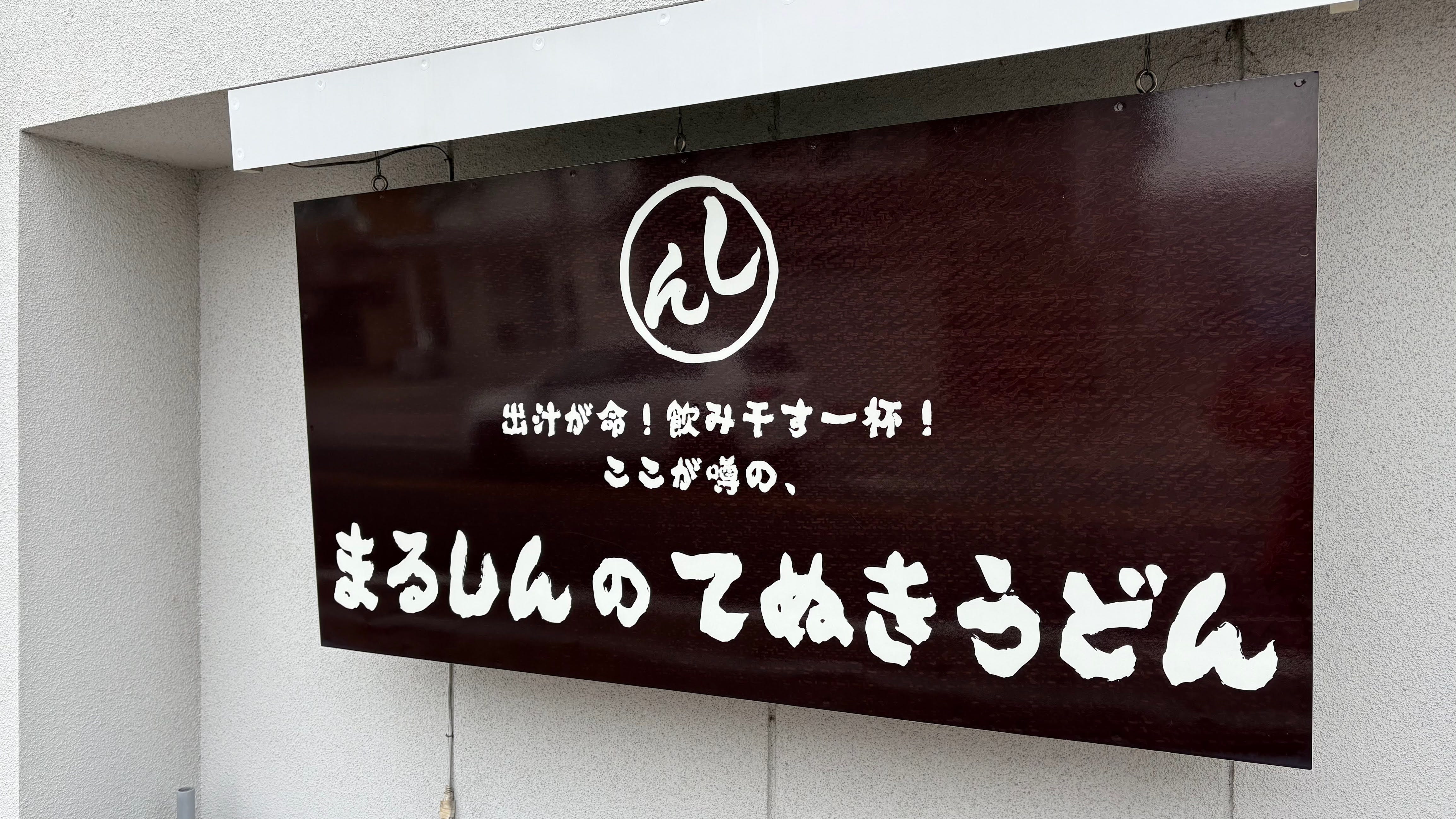 最寄り駅に早く着いたため,駅近くでお昼ご飯を食べることにしました.たまたま見つけた「讃岐うどん」のお店……よく見ると「てぬき(手抜き)うどん」と書いてあります.もちろん入りました.