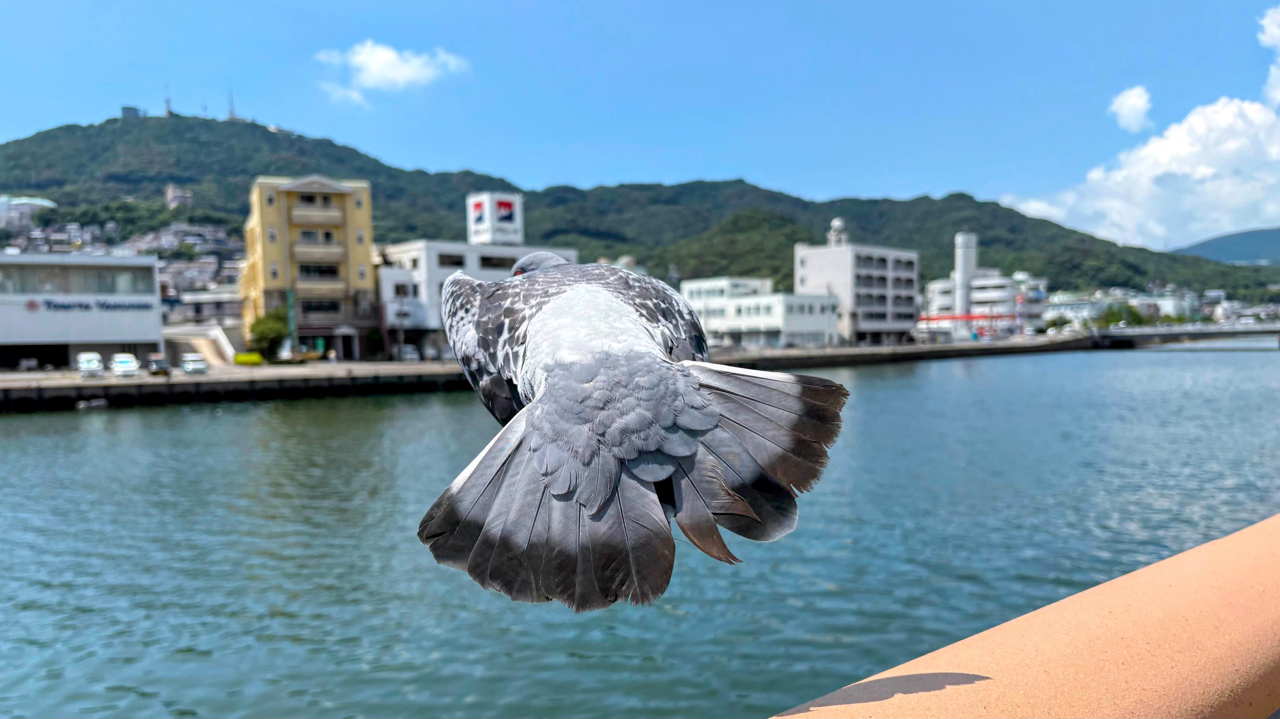 ところで,通勤中にポッドキャストを聞いていることが多いのですが,今日はiPhoneでポッドキャストを選んでいる最中に横で鳩が飛び立ったので,その瞬間を写真に収めることができました.