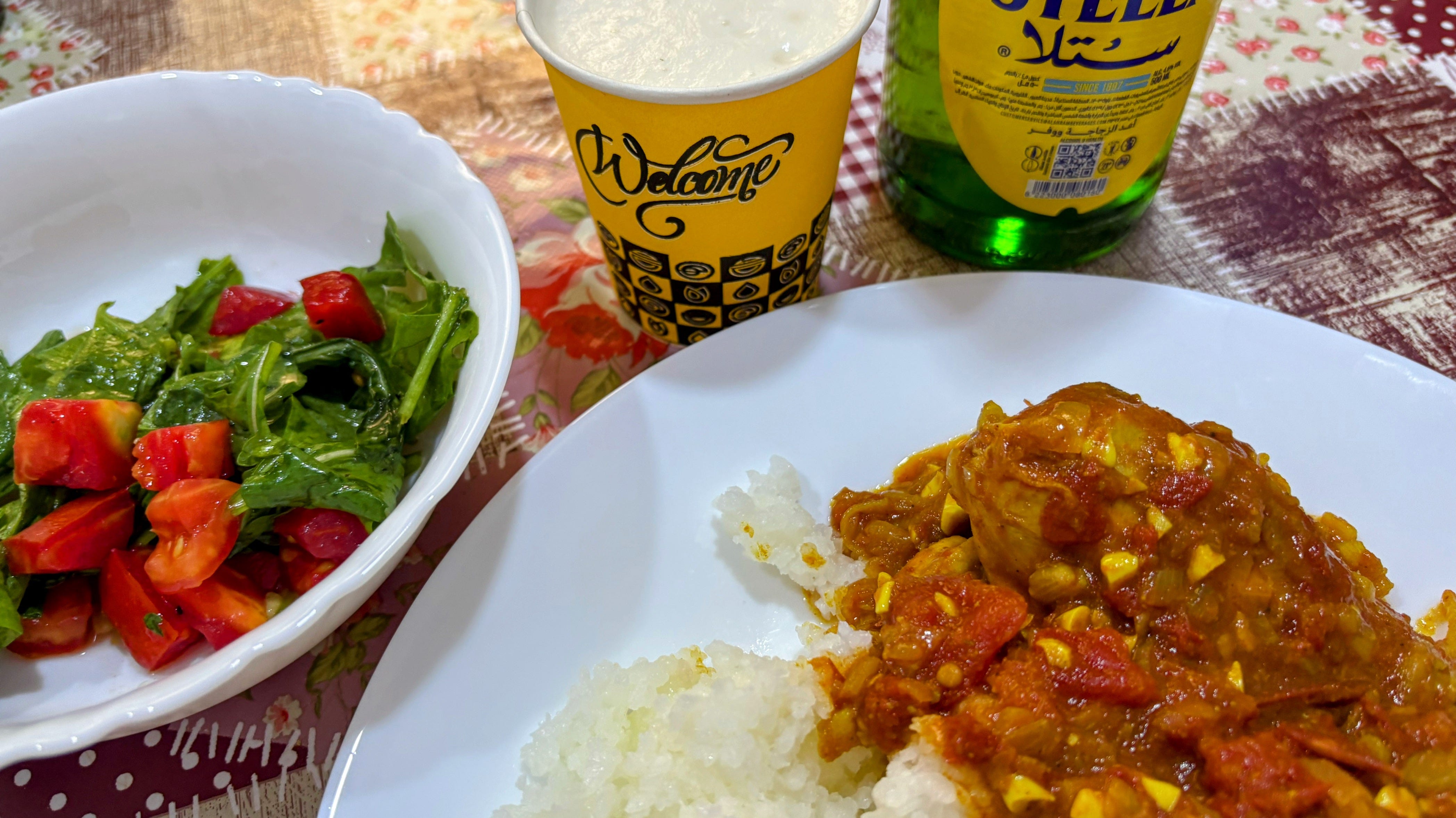 今日は金曜日で現場がお休みなので,8:00から朝食にして,8:30頃から調査隊メンバーの学会発表の練習をしました.そして,10:00頃からまなみさん(矢羽多先生)とチキンカレー作りをしました.